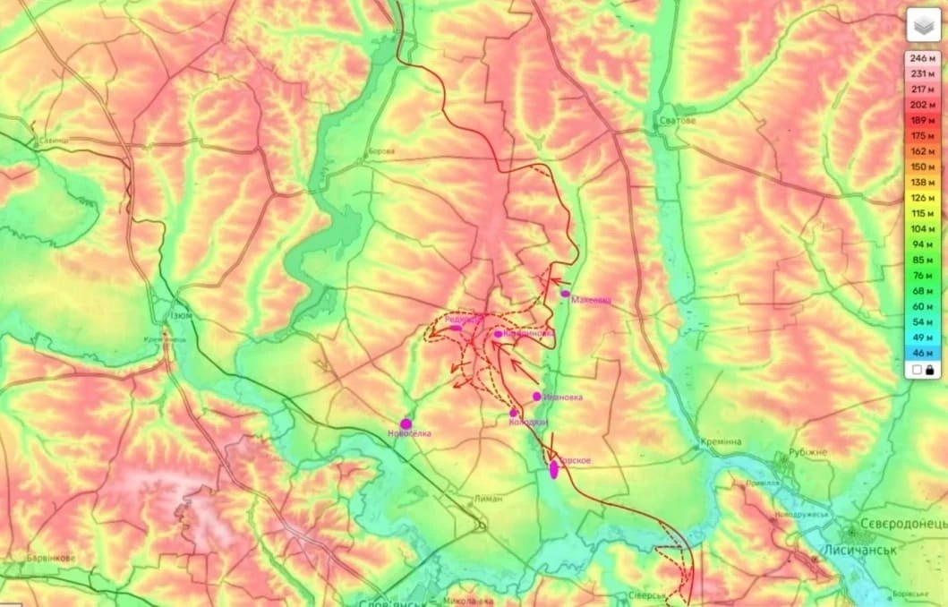 В настоящее время тяжёлые ведутся вдоль реки Северский Донец, где ВС РФ пытаются вытеснить ВСУ с западных отрогов Белой Горы. Подоляка отмечает ожесточённое сопротивление противника, который цепляется за каждую позицию, понимая, что потеря рубежей приведёт к отступлению к Северску.