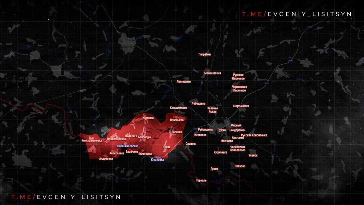 На Сумском направлении продолжаются боестолкновения в районе Тёткино, а также встречные бои в Новониколаевке, в районах Андреевки и Алексеевки. Также российские войска продвинулись в Яблоневке, Юнаковке и восточнее упомянутого населенного пункта.