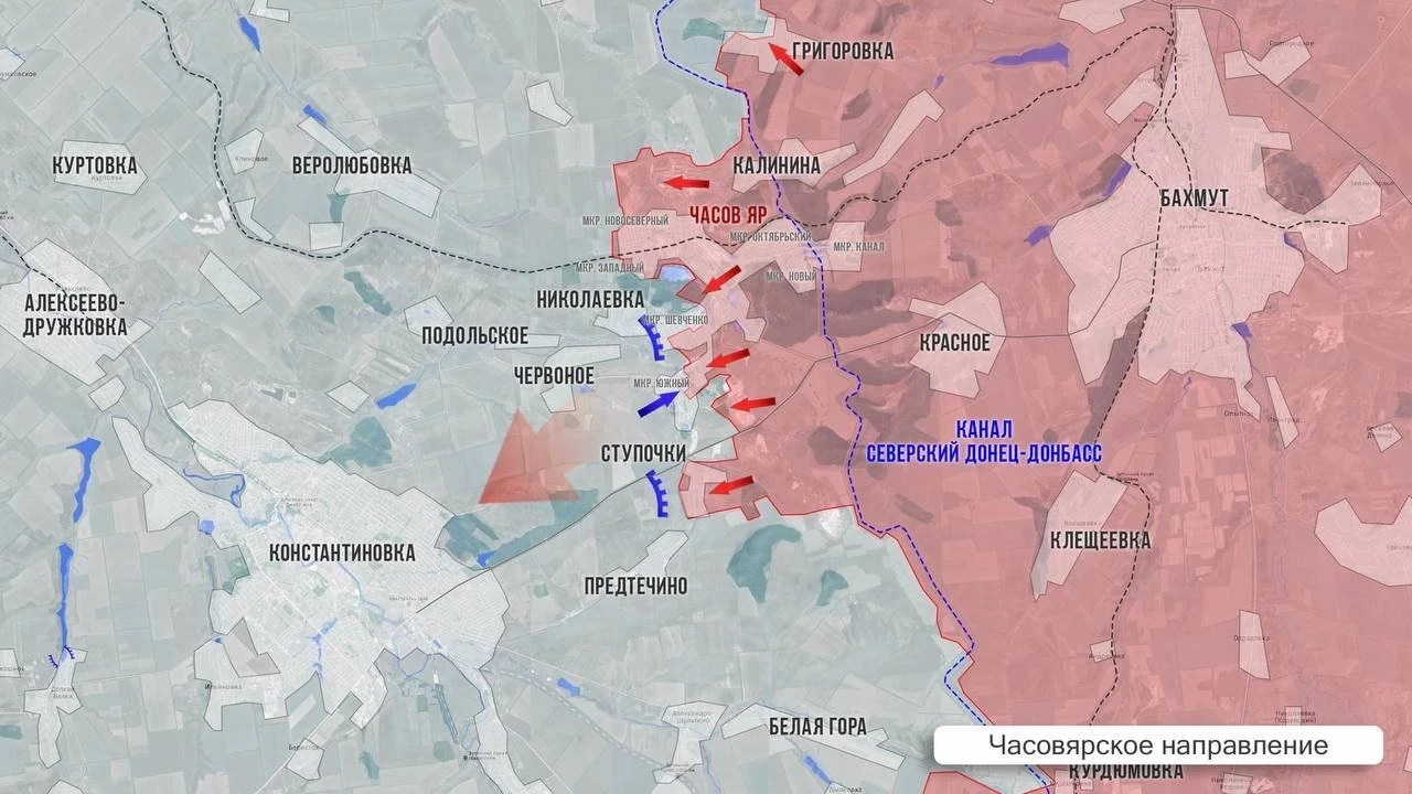 В Часов Яре тяжёлые городские бои. Сообщают, что ВСУ повысили эффективность и дальность ударов дронами по нашей логистике. ВС РФ также активно бьют по логистике ВСУ.