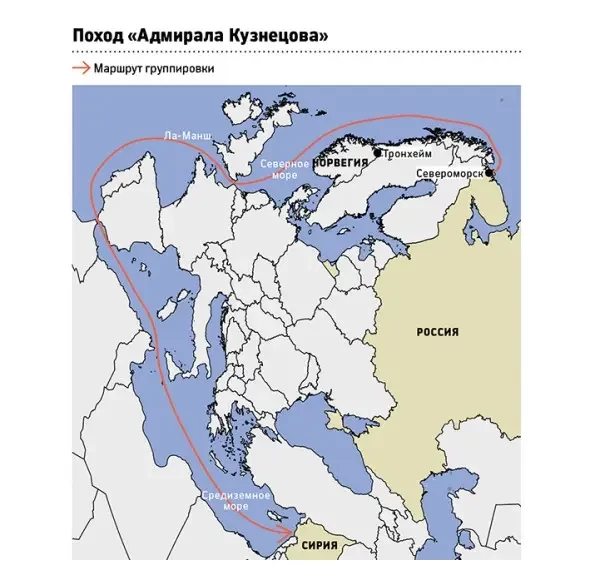 В то же время есть смысл вспомнить поход ТАВКР «Адмирал Кузнецов» в Сирию. Крейсер и сопровождающие корабли вышли в море 15 октября 2016 года из Североморска. 21 октября прошли Ла-Манш. 31 октября группа была у берегов Алжира. 4 ноября корабли оказались у берегов Сирии. 20 дней.