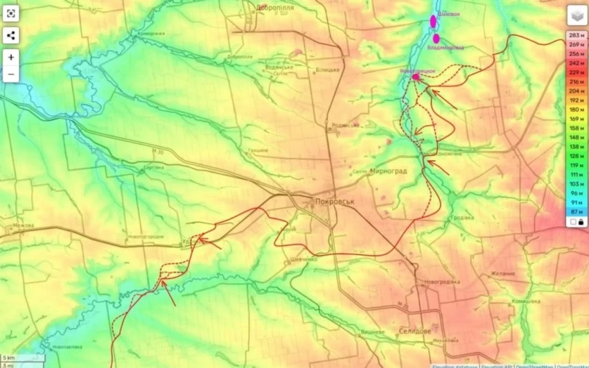 На Покровском направлении российские бойцы с востока очень быстро и успешно охватывают Покровскую группировку противника, где командование ВС РФ, как предполагает Подоляка, попытается применить впервые тактическое решение - занятие крупной городской агломерации без лобового штурма и, соответственно, получить ею удастся относительно целой.