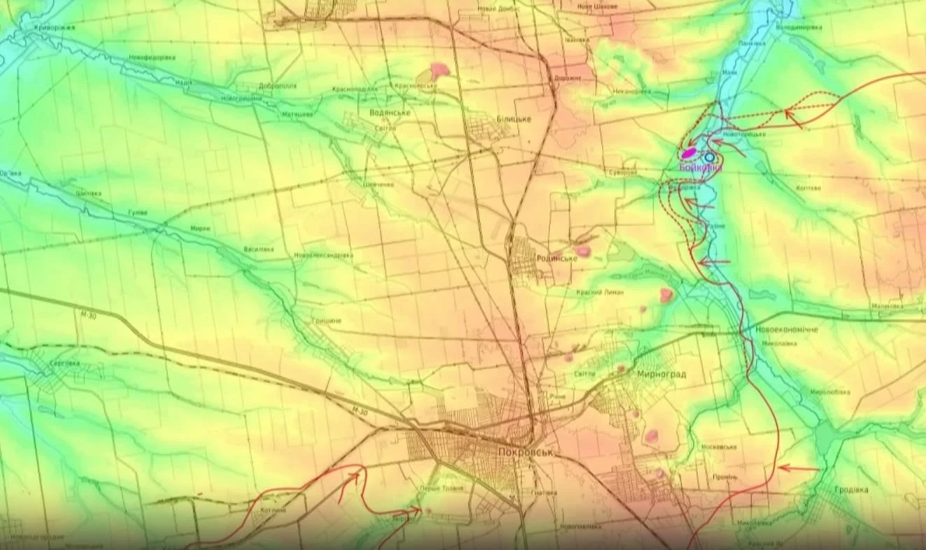 Подобные действия российских войск обрезают коммуникации противника на данном участке фронта, а именно в Покровске и Мирнограде. Таким образом создаётся оперативное окружение.