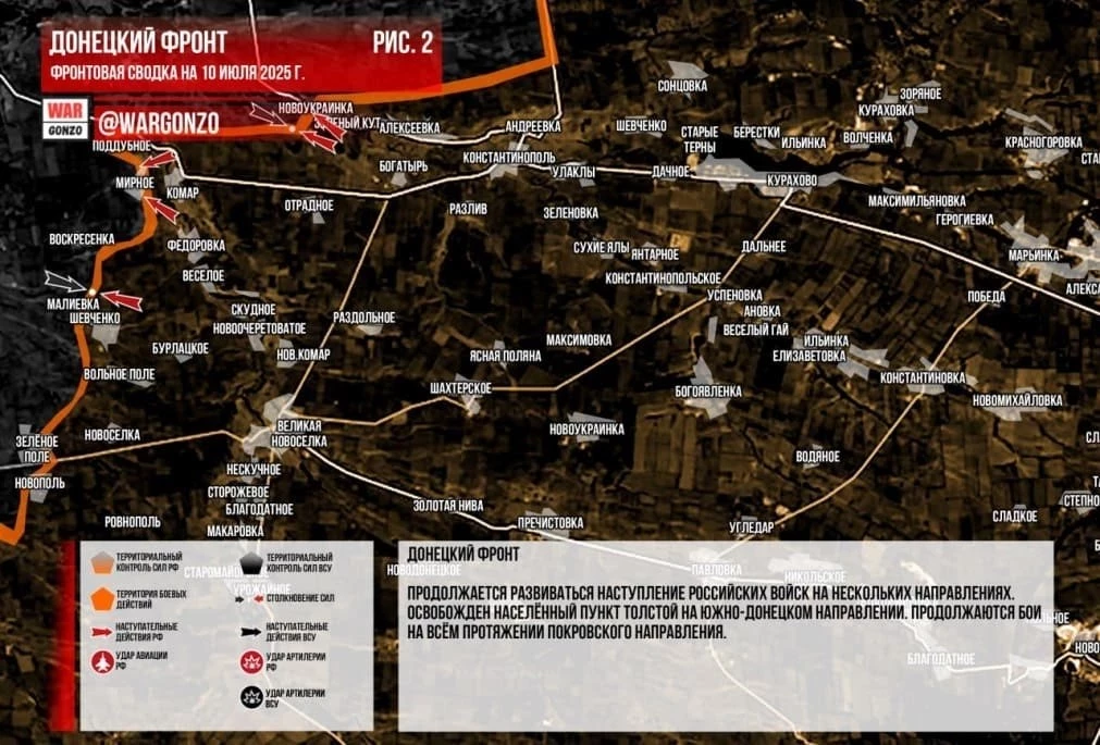 ВС России ведут ожесточённые бои у Мирного на Покровском направлении: свежие данные на 10.07.2025