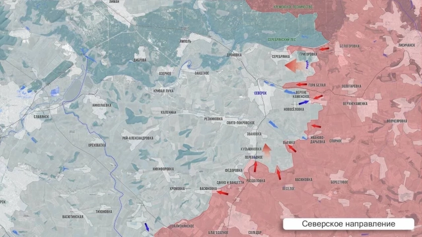 На Краснолиманском участке ВС РФ, по данным с мест, заняли Зелёную долину. Кроме того, есть продвижение наших восточнее Карповки. Выше по фронту отмечено продвижение примерно на 4 км к Боровой, до нее ещё более 8 км.