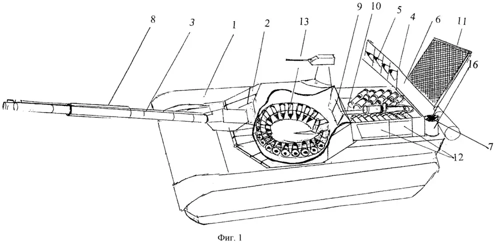 Патент предлагает переделать танк путём замены боевого модуля: демонтировать 125-мм пушку с вертикальным автоматом заряжания и заменить её совершенно новым модулем, включающим 152-мм гаубицу с горизонтальным автоматом заряжания, 30-мм автоматическую пушку и 7,62-мм пулемёт.