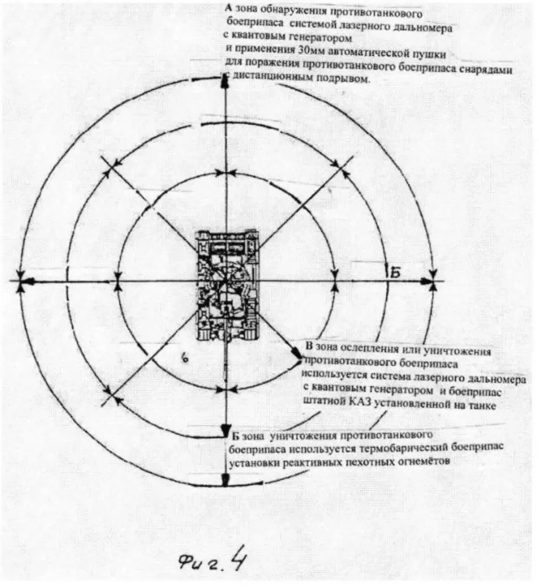 Наконец, штурмовой танк должен быть оснащён системой активной защиты (КАЗ) типа «Арена-М» или «Дрозд-2». При наличии такой системы автоматическая пушка калибра 30 мм сможет использоваться также для защиты самого боевого средства, если дистанционно управляемый боевой модуль оснащён активной системой лазерного противодействия, включающей встроенный лазерный дальномер и квантовый генератор.
