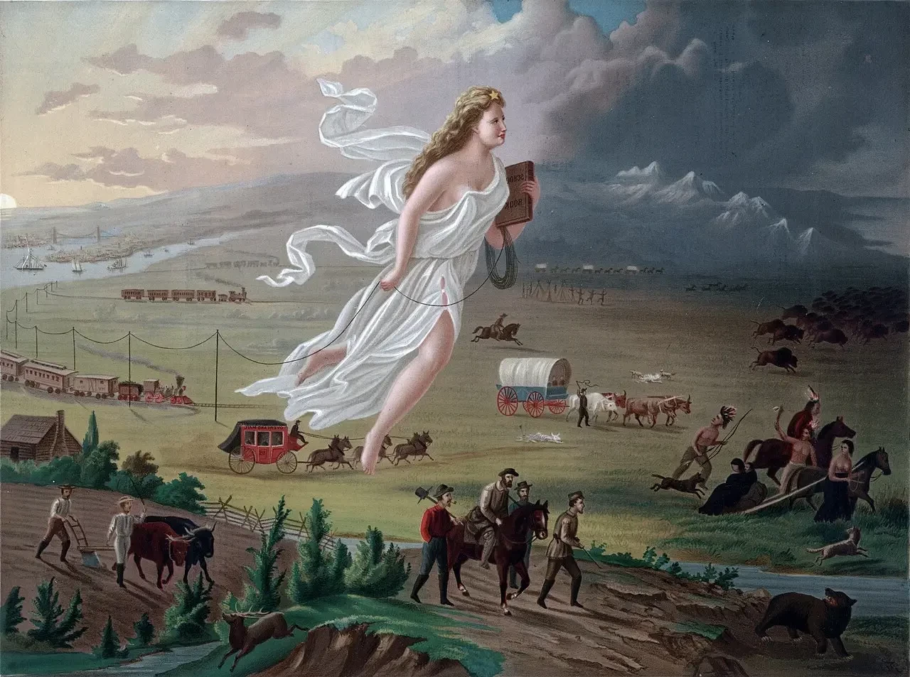 Аллегорическая Картина Джона Гаста, изображающая США в своем движении на Запад...