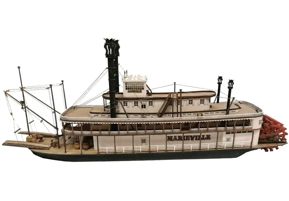 Причина популярности моделей миссисипских пароходов проста. В них нет «мучительного» в изготовлении такелажа парусного корабля, и к тому же это ведь еще и сугубо мирное судно, хотя модели именно военных кораблей во все времена пользовались наибольшей популярностью. И тем не менее… Мирный пароход – это тоже очень красиво!
