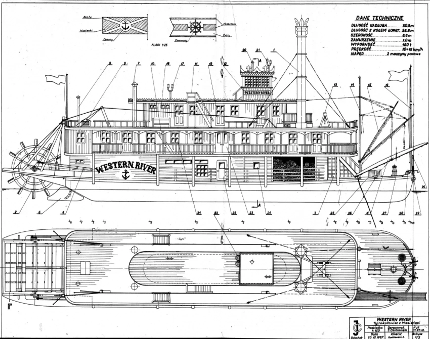 И тут мне в руки попал польский журнал «Малый моделяж» с бумажными развертками парохода «Вестерн Ривер», а еще об этом же пароходе я прочитал в журнале «Моделяж» (1967), когда стал работать на пензенской областной станции юных техников в 1980 г.