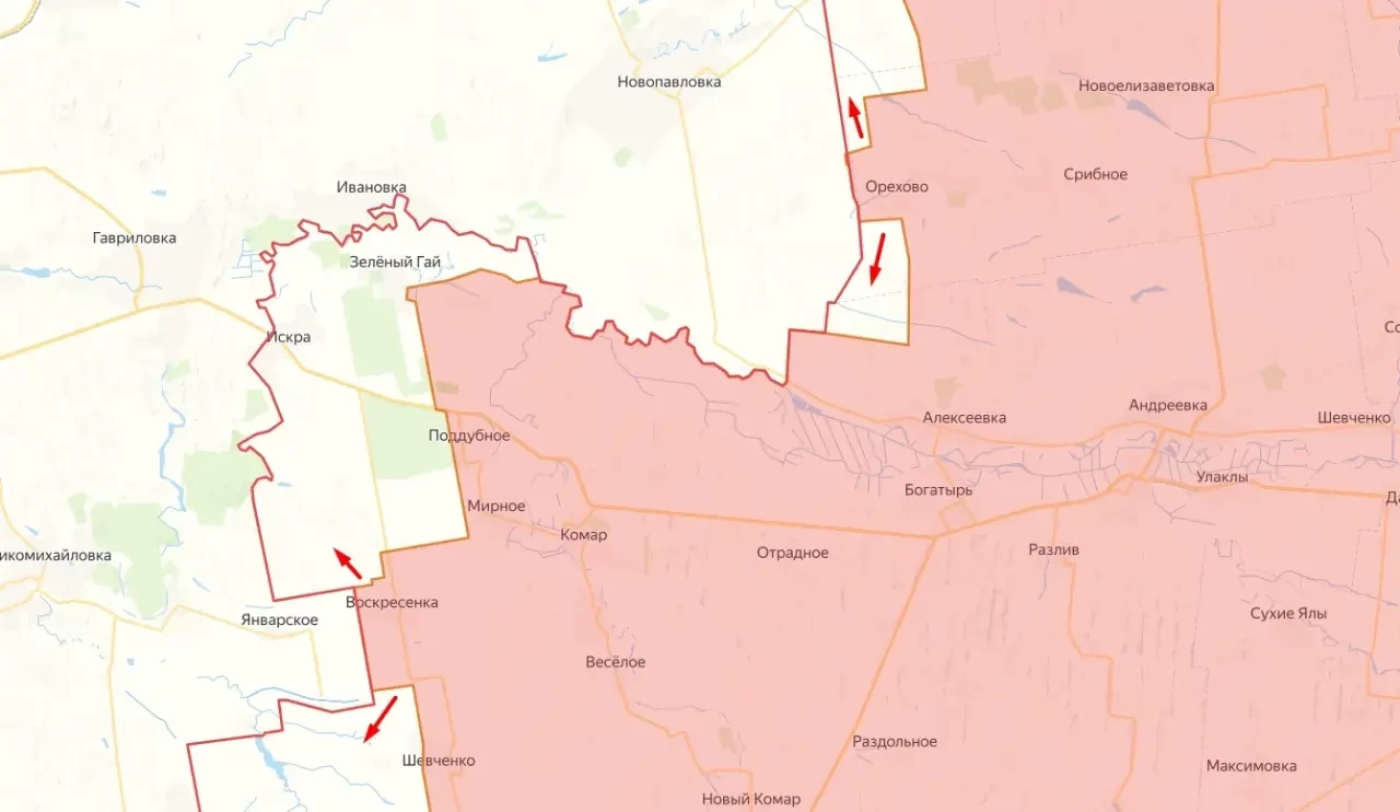 Кроме того, эксперты пишут о новом направлении наступления подразделений ВС РФ от населённого пункта Маяк, расположенного к северо-востоку от Покровска, в северном направлении. Что характерно, на карте противника «серая зона» дошла уже до Нового Шахово. Это может свидетельствовать о том, что наши бойцы подошли к окрестностям данного села.