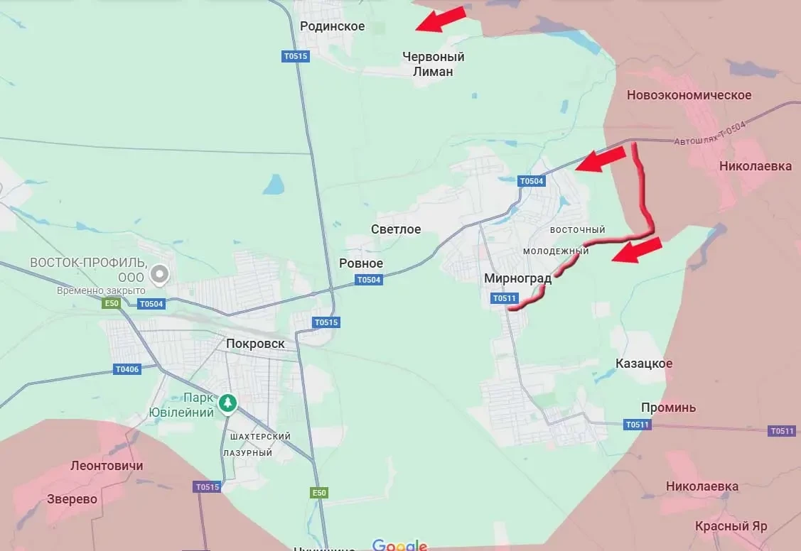 При учёте нахождения передовых подразделений нашей армии близ Червоного (Красного) Лимана и на восточной окраине города Родинское, подразделения ВСУ в Мирнограде близки к тому, чтобы оказаться в огневом мешке.