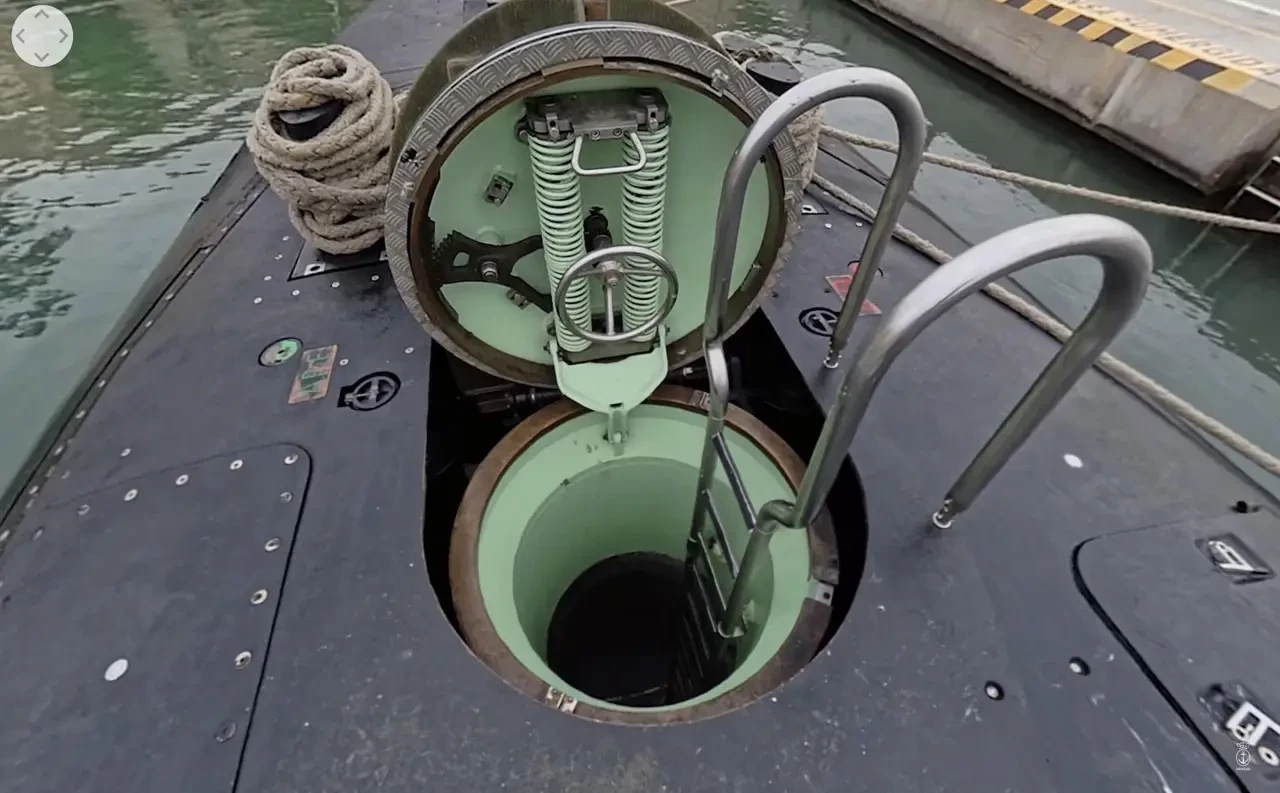 Верхняя кормовая часть рубки. Видны два сиденья и справа один из люков, закрывающих эту секцию во время подводного хода