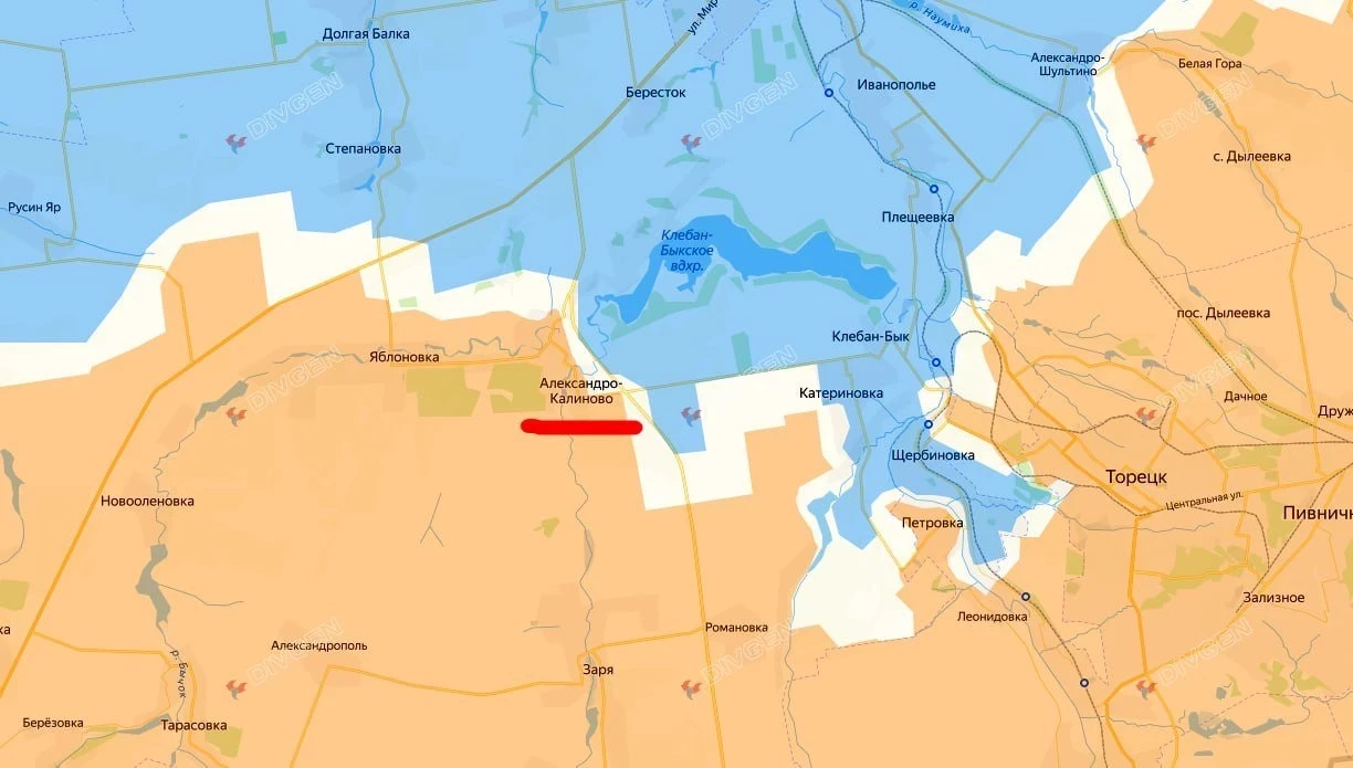 На Константиновском направлении сообщают, что в освобождённом накануне Александро-Калиновой в плен попали ВСУшники, которые не смогли отойти из села. Теперь ВС РФ могут наступать напрямую на Константиновку, либо двигаться дальше на восток, замыкая окружение сил ВСУ в Катериновке, Клебан-Быке и Щербиновке. Между Торецком и Часов Яром ВС РФ продвинулись к Александро-Шультино. В Часов Яре наши бьются в Северном и Шевченковском мкр. В окрестностях города есть улучшение позиций в районе Ступочек.