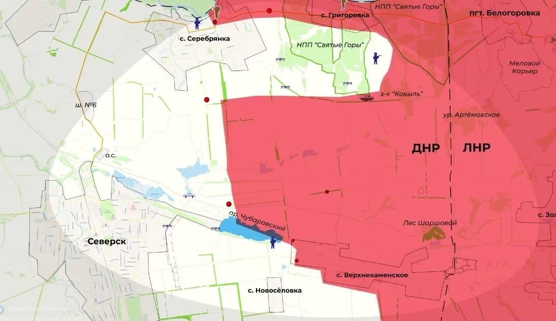 Северское направление. ВС РФ пытались прорваться к Северску на бронетехнике, но избежали прямого штурма. Жёсткие бои южнее Серебрянки.