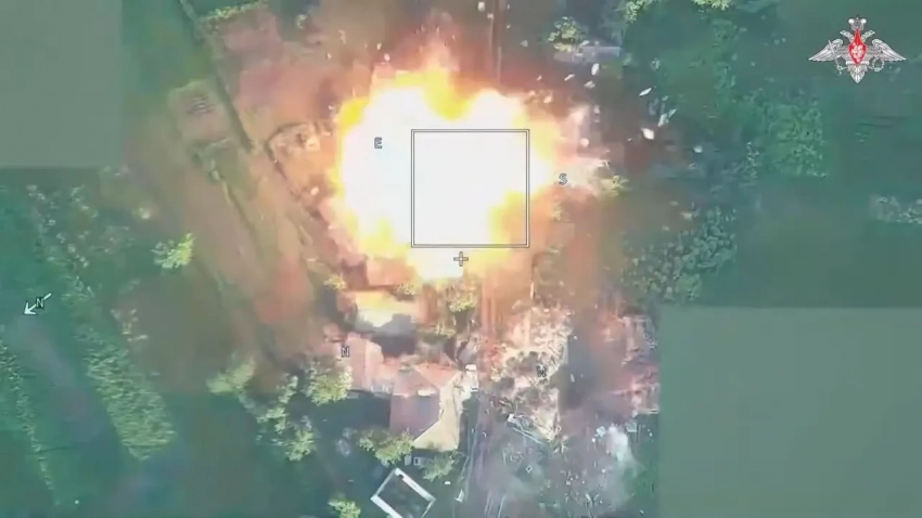 Поражение пункта дислокации и автотранспорта противника. Фото Минобороны РФ