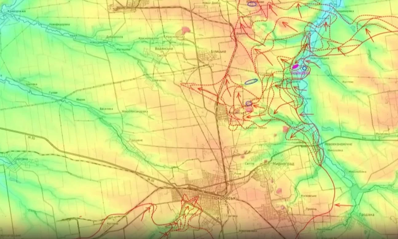 В своем Telegram-канале он сообщил, что бойцам 51-й армии удалось вбить клин между Белицким и Родинским. В итоге город Белицкое фактически оказался в оперативном окружении. Подоляка отметил, что в северной и юго-восточной частях Родинского продолжаются ожесточенные бои. Также российские войска наступают в районе центральной обогатительной фабрики Мирнограда, где удалось окружить украинские подразделения.