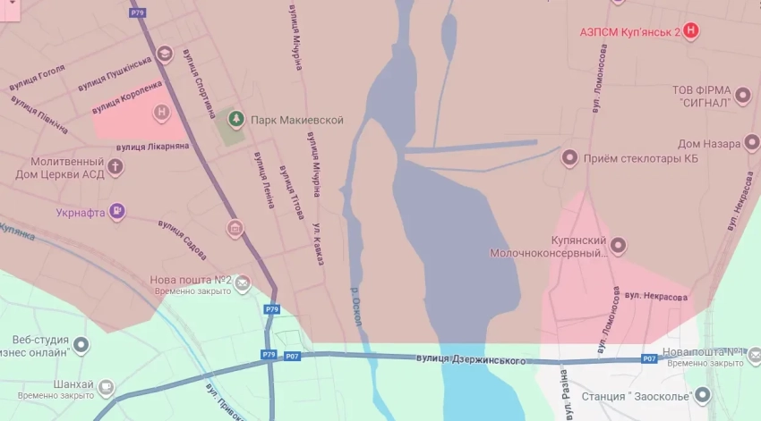 Поступают сообщения о том, что под контроль армии России всего за несколько часов перешла территория площадью не менее 10 кв. км. Это городские кварталы от левого берега реки Оскол до железнодорожных путей к северу от станции Заосколье.