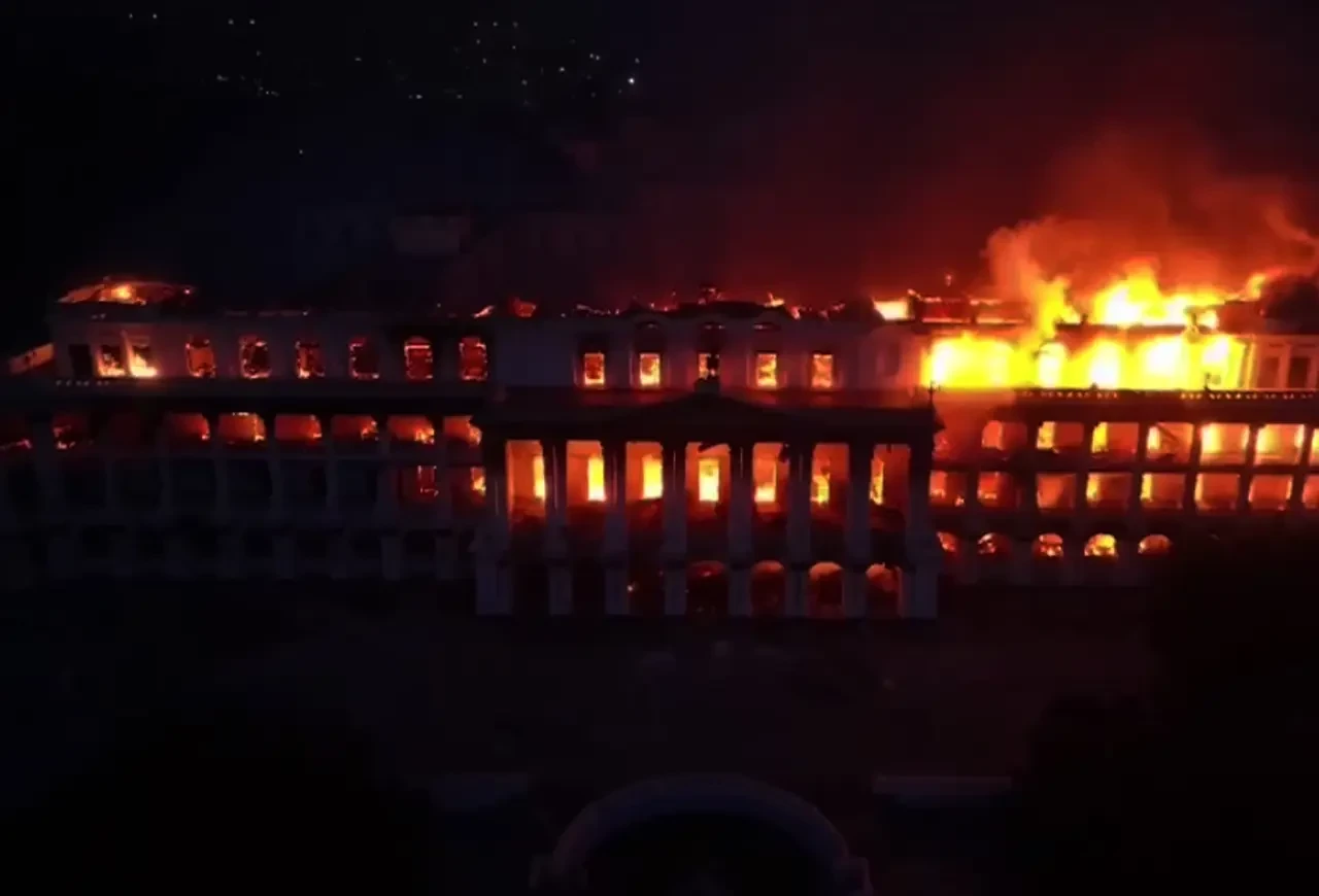 Горят или уже сгорели главный правительственный центр, здание федерального парламента, канцелярия президента, здание верховного суда, здание районной администрации, дома премьер-министра и предшественников премьер-министра и офисы партий. Уничтожены архивы - правительственный, судебный, несколько партийных. Горят библиотеки, полицейские участки и многое другое.