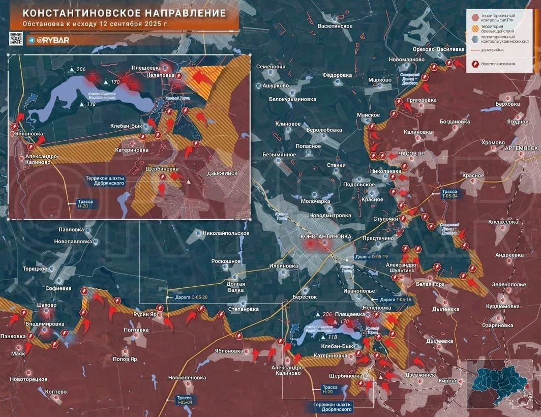 «Интенсивные боестолкновения фиксируются в районах Катериновки, Клебан-Быка и Яблоневки. Противник пытается удерживать позиции, однако плотность российских атак сохраняется высокой. Силы российской армии продвинулись вдоль железнодорожной линии от Щербиновки и зашли в Плещеевку, закрепившись в её пределах», - пишет «Донбасский партизан».