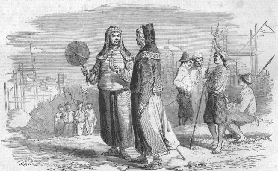 Тайпинский князь в компании солдат с холодным и огнестрельным оружием