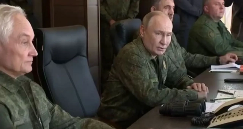 Российский президент прибыл на полигон Мулино в Нижегородской области, где заслушал доклад министра обороны Белоусова, понаблюдал за маневрами и ознакомился с вооружением, военной и специальной техникой, применяемой в ходе учений «Запад». Причем прибыл Путин на полигон в военной форме, как отмечают российские медиа, последний раз российский лидер появлялся в форме в марте этого года при посещении командного пункта российской группировки в Курской области.