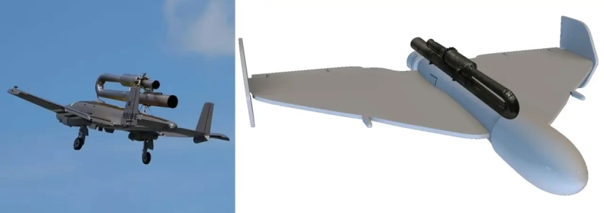 БПЛА Scitor-D (слева) и возможный облик «Герани» с ПуВРД