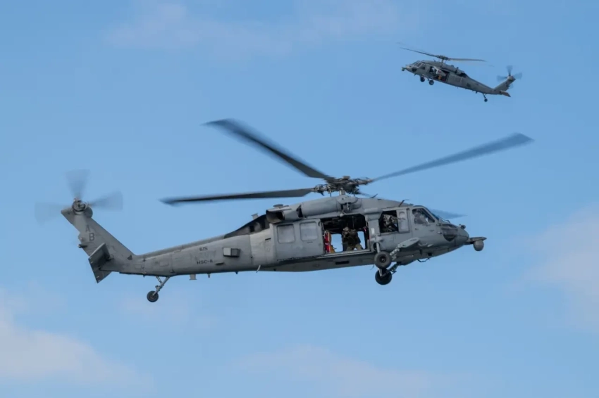 На опубликованном видео можно наблюдать приближение военного вертолета к гражданскому судну и последующую высадку на него по тросам вооруженных людей.