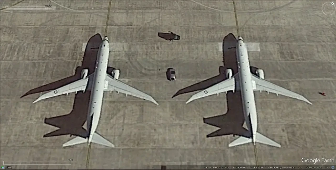 Спутниковый снимок Gооglе Eаrth: самолёты Boeing P-8А Poseidon на авиабазе Кадена. Снимок сделан в мае 2019 года