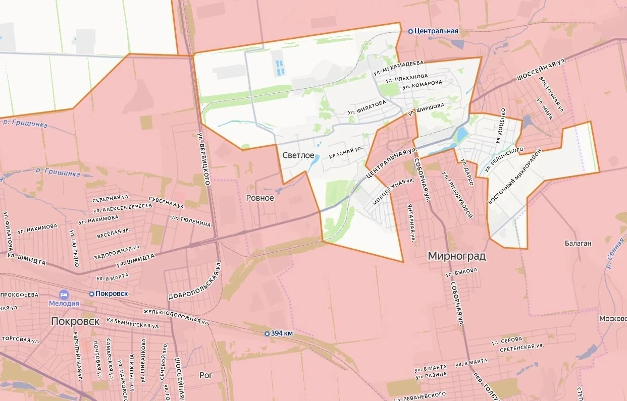На Красноармейском направлении ВС РФ продолжают продвигаться от Удачного и Котлино в сторону Сергеевки. Наши бойцы бьются за Гришино, почти половина села под нашим контролем. С мест сообщают, что ВС РФ после ожесточенного сражения удалось выбить противника из Родинского, после чего они также начали продвижение к Гришино. В Димитрове остаётся очаговое сопротивление противника, идёт зачистка остатков города. Наши бойцы взломали оборону противника в Софиевке и продолжают наступление в Торецком.