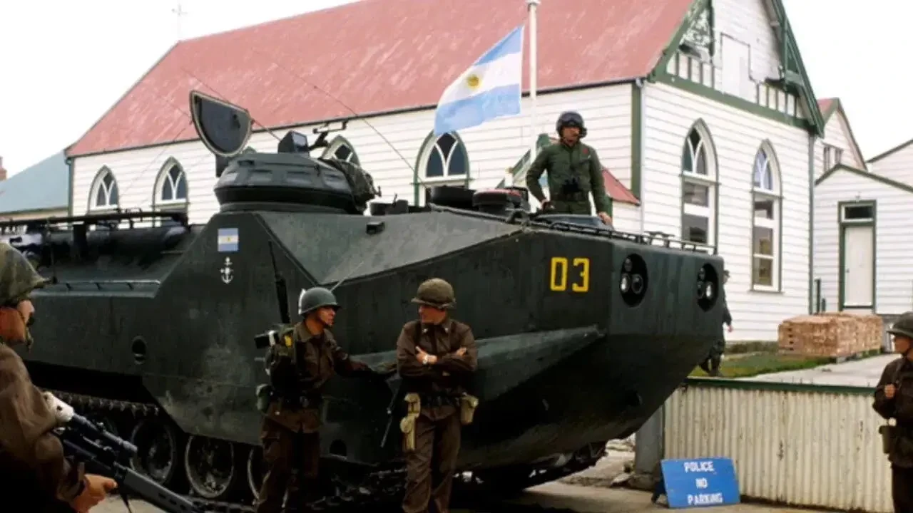 Аргентинские плавающие БТРы на улицах Порт-Стэнли