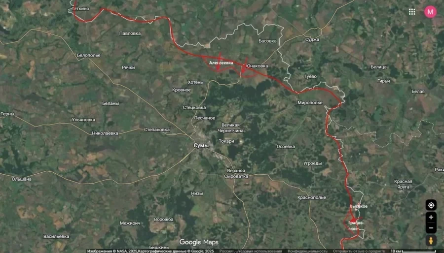Также фиксируются продвижения в Краснопольском районе, вблизи населённых пунктов Грабовское и Высокое. Аналитик отмечает, что совокупность этих действий формирует для ВСУ крайне уязвимую конфигурацию фронта. Дальнейшее продвижение российских войск создаёт условия для фактической блокады города Сумы с применением беспилотников и перерезанием ключевых логистических маршрутов.
