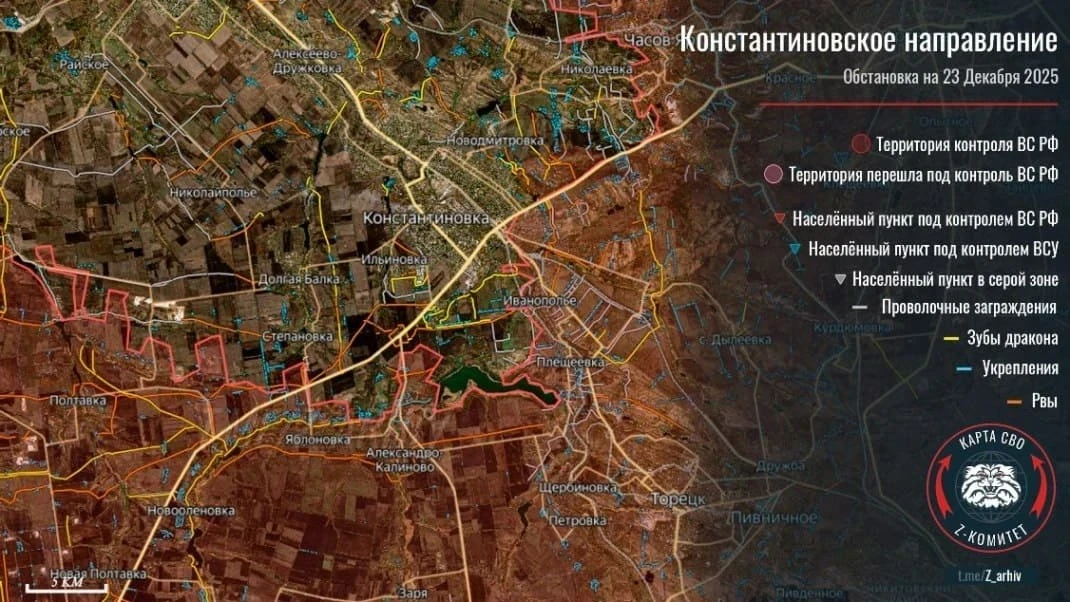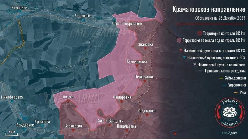Карта боевых действий на Украине. Ситуация в зоне СВО на 23.12.2025