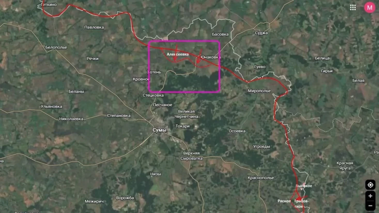 Карта ВСУ раскрывает геометрию полос обороны на востоке Сумской области
