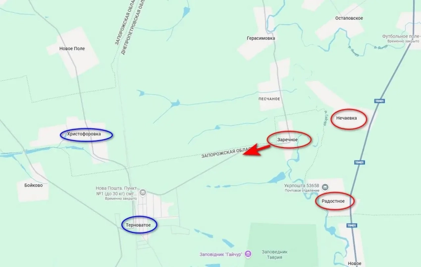Войска группировки «Восток» продолжают свое движение в Запорожской и Днепропетровской областях, очередным освобожденным населенным пунктом стало небольшое село Заречное на стыке этих двух регионов. Переход данного населенного пункта под контроль ВС РФ позволяет расширить плацдарм на западном берегу реки Гайчур, а заодно взять под контроль участок дороги между Братским и Терноватым.