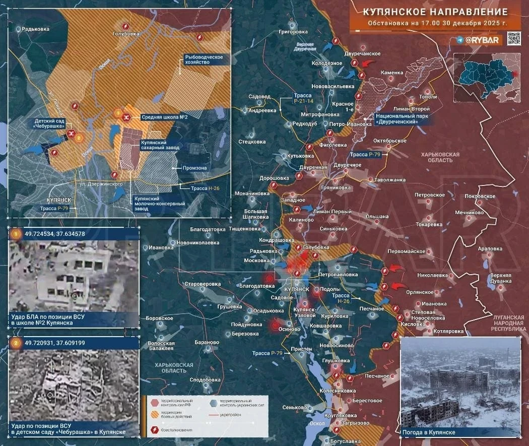 Тяжёлая ситуация в Купянске подтверждена фотографиями, город серьёзно разрушен, карта боевых действий на 31.12.2025