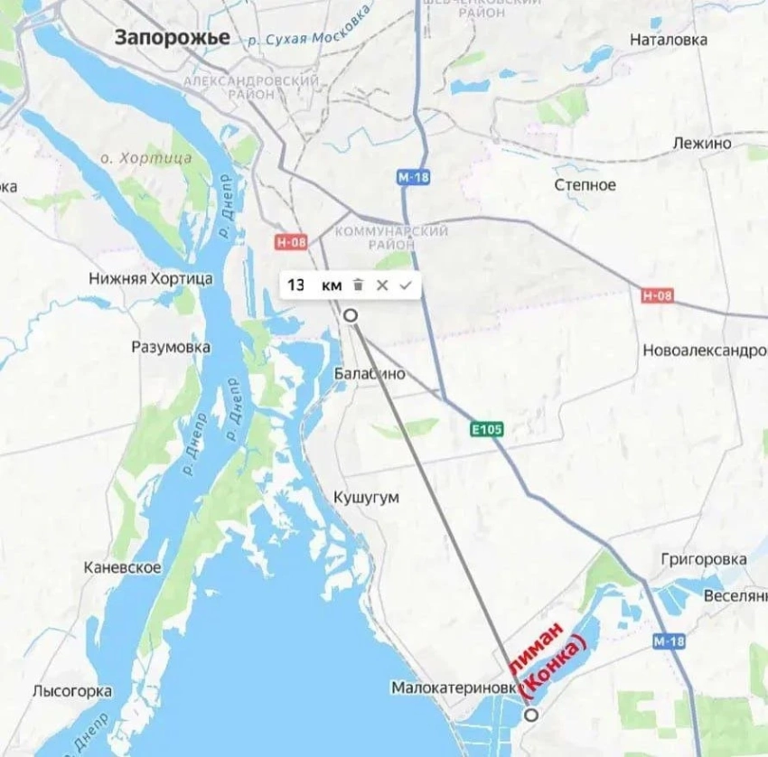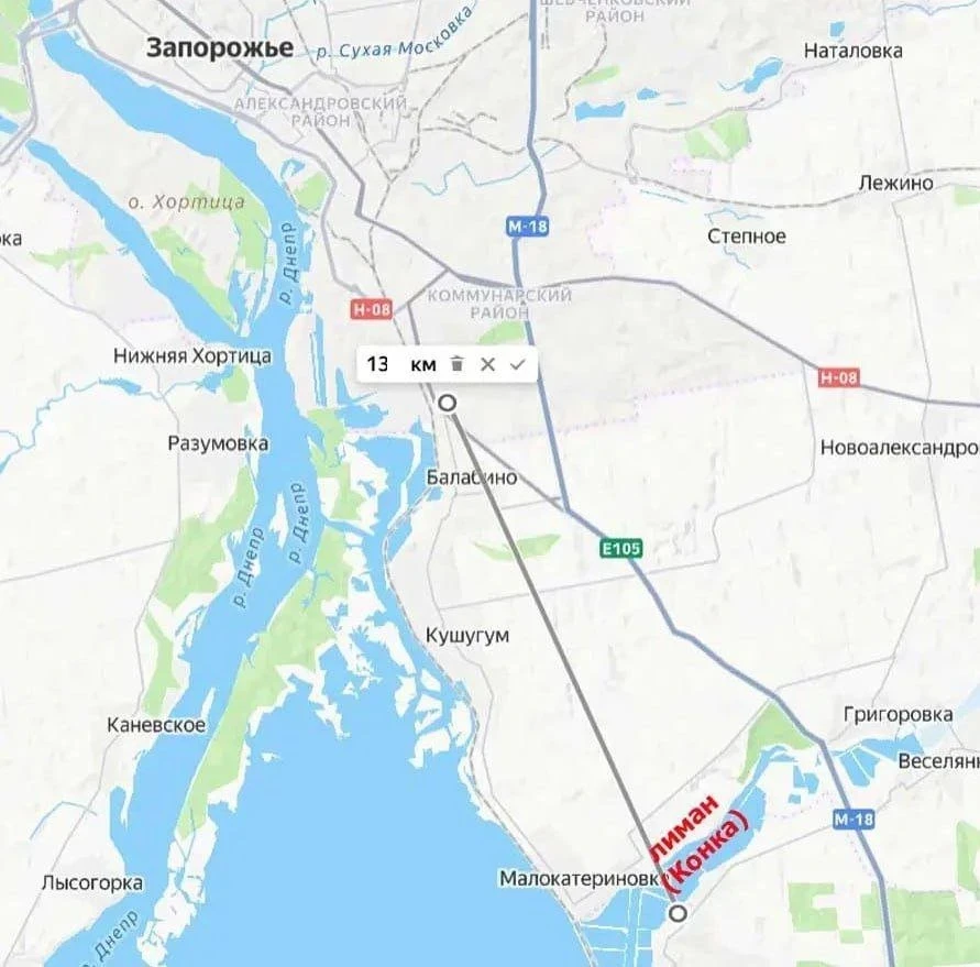 С выходом российской армии на южный берег упомянутого лимана расстояние до южной окраины областного центра, города Запорожье, сократилось до 13 километров. А любой километр приближения - увеличение возможностей по применению того или иного вооружения для нанесения огневого поражения противнику в черте Запорожья и на его подступах.