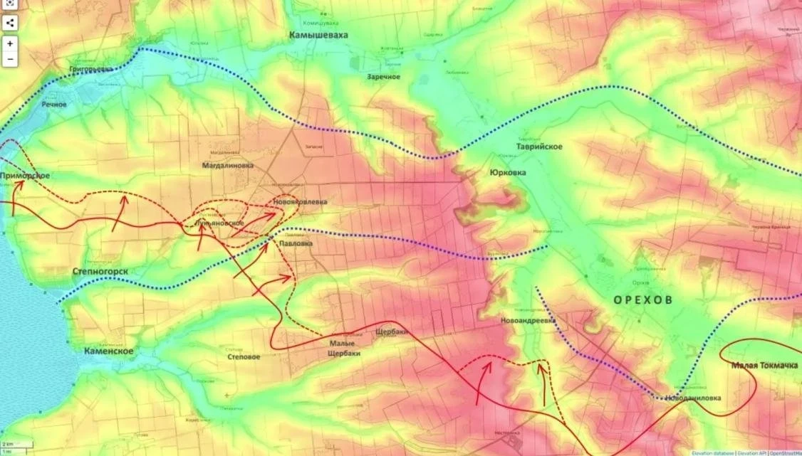 Особое значение имеет овладение высотами западнее Юрковки. Их занятие позволит развернуть системное огневое воздействие на логистику Орехова, фактически парализовав снабжение гарнизона. В дальнейшем рассматривается возможность выхода на Камышеваху, однако перед этим предстоит преодолеть ещё одну хорошо подготовленную линию обороны ВСУ.