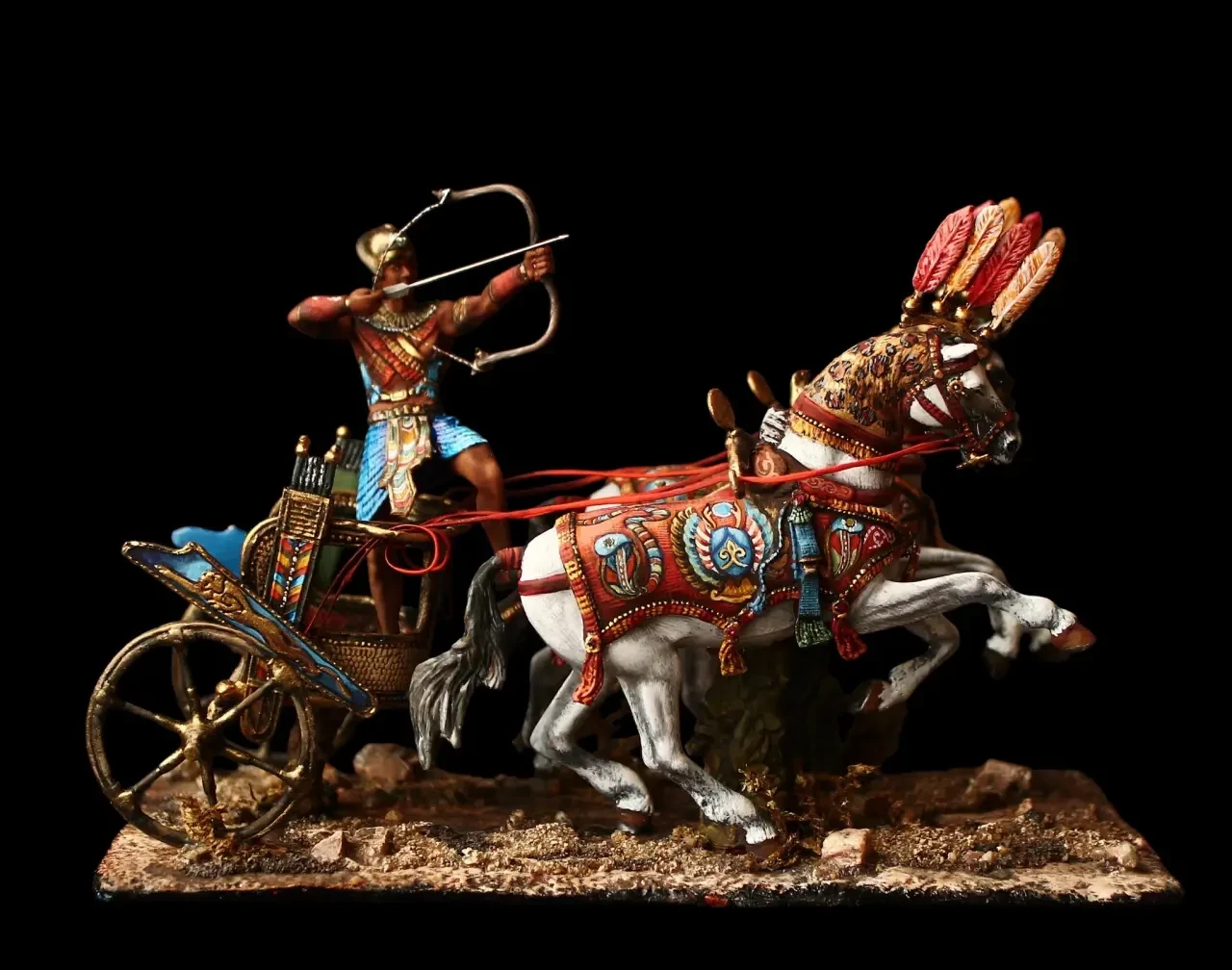 Миниатюра из «белого металла», изображающая египетскую колесницу в битве при Кадеше 1300 г. до н. э. Производитель: «Silver Dream Studio» и «El Viejo Dragon»