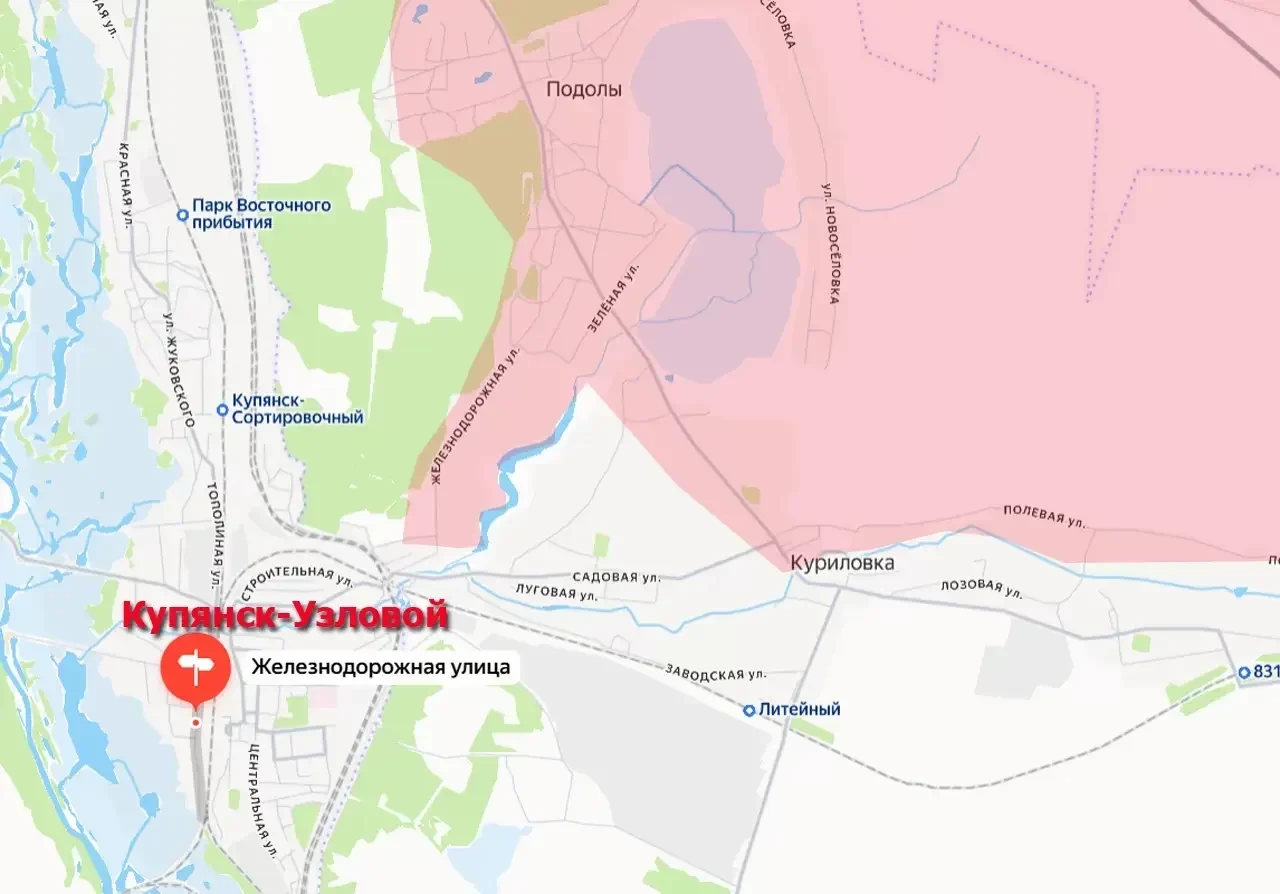 Тем временем появляются сообщения о развитии успеха Вооружёнными силами России на упомянутом левобережье Оскола. Речь идёт о переходе под контроль ВС РФ улицы Железнодорожная в пригороде Купянска - населённом пункте Купянск-Узловой, уточняет "Военное обозрение".