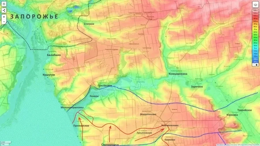 На Запорожском фронте внимание привлекло заявление командующего группировкой «Днепр» Михаила Теплинского о том, что до Запорожья остаётся около 15 километров. Юрий Подоляка подчёркивает, что важнее не сама цифра, а характер огневого контроля.