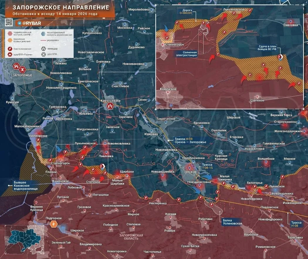 Новая карта боевых действий в зоне СВО на Украине на 15.01.2026