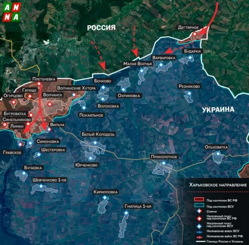 ак, передовые российские военные подошли к восточной окраине и заняли часть Нестерного - это населённый пункт в 5 км от Дегтярного. В перспективе наступление ВС РФ здесь поможет зачистке левого берега реки Волчья и высвободит силы для развития наступления на юг от Волчанска Харьковской области.