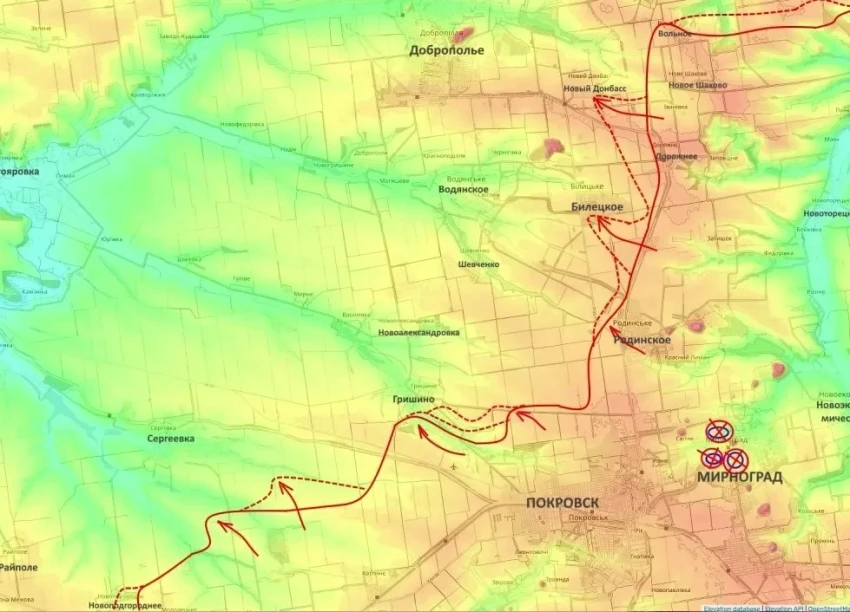 В свою очередь Покровский фронт остаётся одним из наиболее напряжённых. Здесь идут столкновения уже непосредственно в городской застройке. По данным, озвученным в ходе инспекции начальником Генштаба ВС РФ Валерием Герасимовым, бои переместились в районы Белецкого и Нового Донбасса.