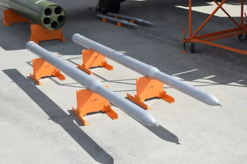 Еще один вариант — установка на БПЛА-камикадзе семейства «Герань» вместо штатной БЧ по одной направляющей с неуправляемой авиационной ракетой (HAP) C-13T или C-13Б, способных пробивать метр бетона и шесть метров грунта, — такие ракеты также будут нарушать структурную целостность опор, делая их более уязвимыми для ОФ БЧ.