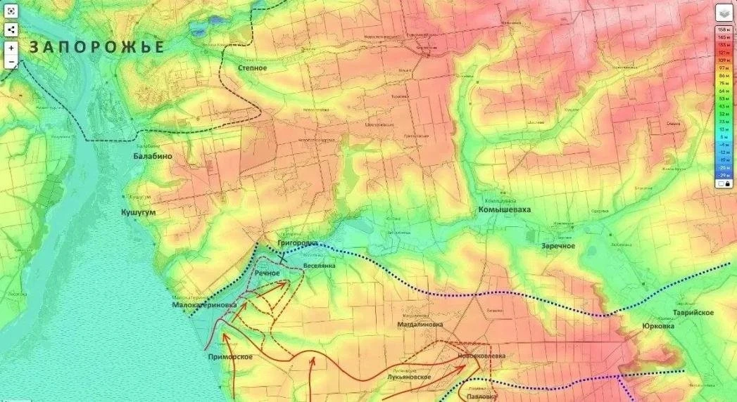 Освобождение Речного означает успешное продвижение ВС РФ вдоль долины реки Конка. По прямой от наших новых позиций до южных окраин города Запорожье осталось не более 11,5–12 километров. Это расстояние уже позволяет российской армии менять тактику огневого поражения.