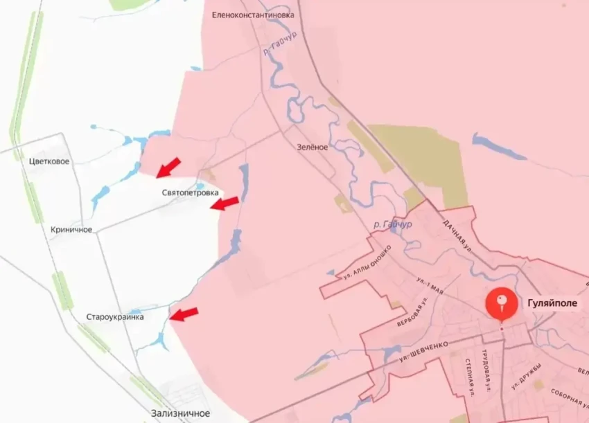 Подразделения армии России продолжают наступать в районе города Гуляйполе Запорожской области, буквально ежедневно освобождая новые населенные пункты. Поступают сообщения об освобождении села Петровка (украинское название Святопетровка), расположенного к северо-западу от Гуляйполя.