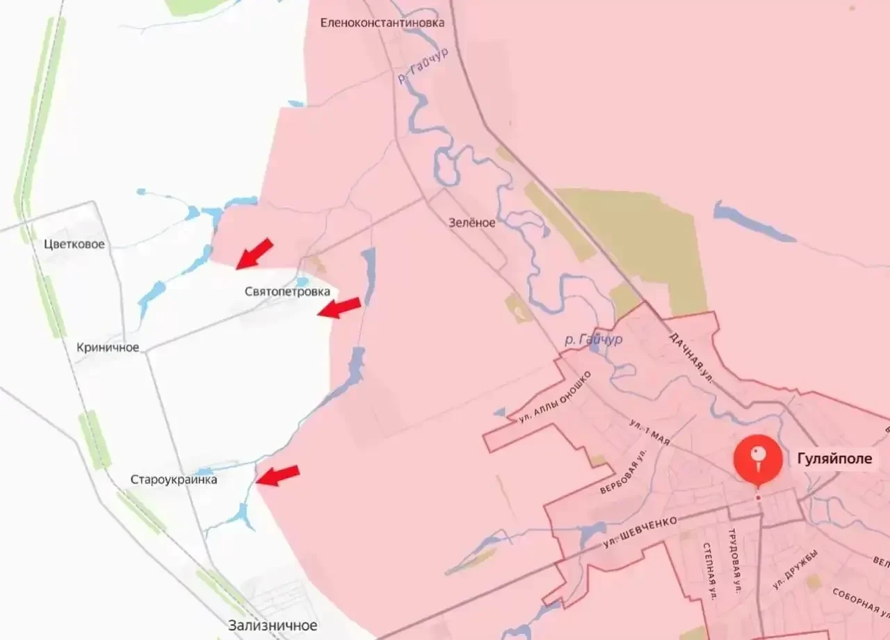 Подразделения армии России продолжают наступать в районе города Гуляйполе Запорожской области, буквально ежедневно освобождая новые населенные пункты. Поступают сообщения об освобождении села Петровка (украинское название Святопетровка), расположенного к северо-западу от Гуляйполя.