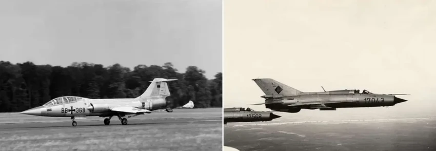 В качестве первой «дуэли» называется противостояние между F-104 Starfighter, поступившего на вооружение бундесвера в 1960 году, и МиГ-21 с «формой карандаша», специально использованной для достижения высоких скоростей. Он мог быстро набирать высоту и отличался манёвренностью – «не идеальный ни в одном аспекте, но достаточно хороший во всех».