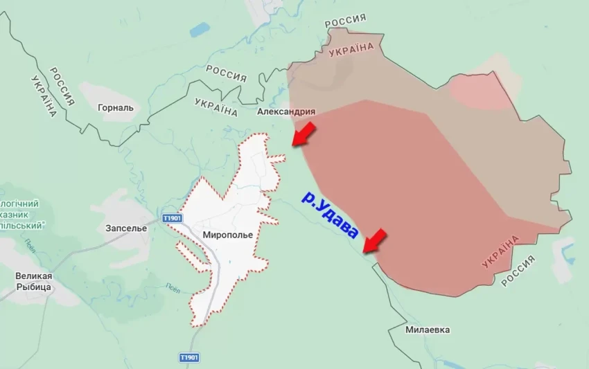 Теперь противник, понеся потери в приграничной зоне, вынужден отходить в центральную часть Мирополья - за Удаву, сообщает "Военное обозрение".