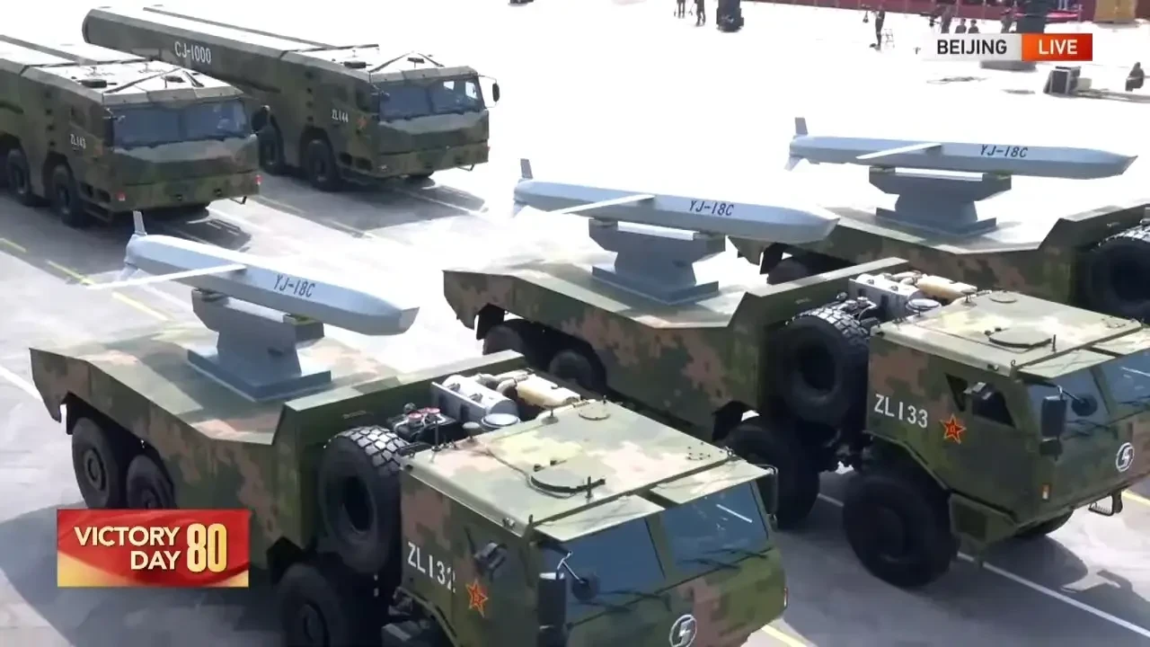 Ракеты «Инцзи-18C» на параде, 3 сентября 2025 г. Фото SCMP